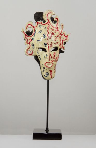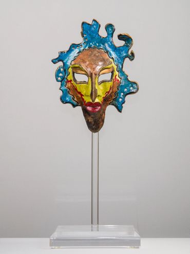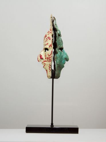 In the last decade many artists have used the form of the mask as a vehicle for cultural commentary, as in Liu Bolin’s re-creation of Peking Opera masks using junk- food packaging and advertisements, or Mozambican artist Goncalo Mabunda’s mask-like sculptures, which incorporate arms recovered from his country’s recent civil war to comment on the disruptive power of violence on cultural traditions.